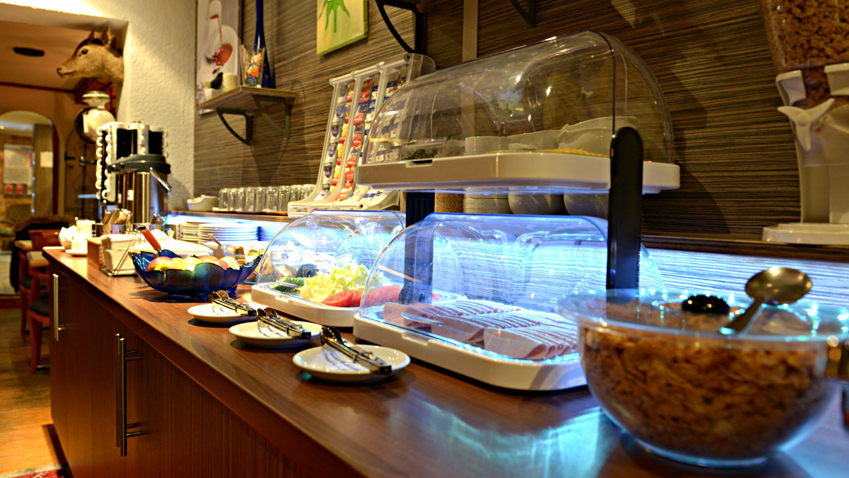 We are happy to welcome you in our cozy lobby. In the dining room right next to the lobby we offer a breakfast buffet including coffee, tea, juice, fresh bread, eggs, sausage and cheese to invigorate you for your daily activities. At your request we will provide you with packed lunch.